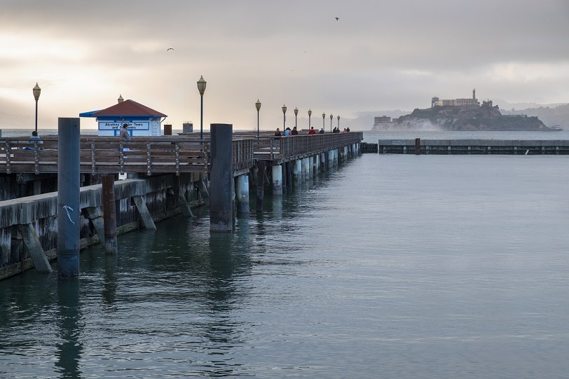 Cruzar el puente Oakland Bay Bridge ha sido la traca final. Este tráfico es de majaras. Que bonito es San Francisco, Alcatraz, El Fisherman´s Wharf, el puerto con su ambiente de barcos y restaurantes de pescado. Pescado, por fin!!! Sus cuestas. El tranvía. El Golden Gate que parece que nunca se ve bien por que está bajo una niebla perpetua. Alcatraz, las focas, enormes, nadando en la bahía. Pero que frío, y he salido del hotel en camiseta, mañana enfermo.