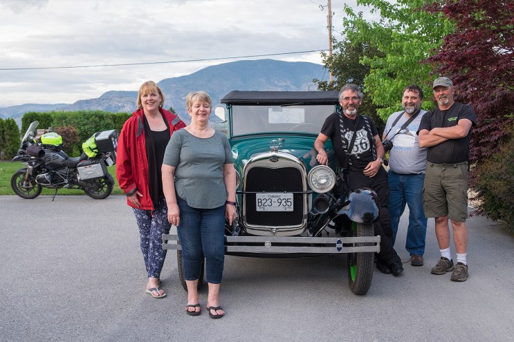 Llego a Oliver. Me están esperando. Mike y Ann en casa de su hermano y su mujer. La tienda de campaña? ni soñarlo, te quedas en casa, cenas con nosotros y duermes aquí. No cabe un no, así que asiento encantado. Parece gente muy agradable y la casa es enorme. Antes de cenar, aún es de día, charlamos y tomamos unas cervezas. Gracias que Mike habla francés. Damos una vuelta  por los viñedos con una camioneta Ford de 1928 restaurada por el hermano de Ann. Toda una joya. Cenamos y charlamos de las etapas que me quedan y su recorrido. Será de gran ayuda.