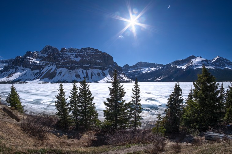 La carretera 93 es de esas cosas que justifican, en si misma, un viaje. Es como ir a la India para ver el Taj Mahal o Coger un avión para ver el Gran Cañón o el glaciar Perito Moreno. Esta carretera que estoy recorriendo y que no voy a terminar hoy, es sin duda, un espectáculo grandioso. Montañas nevadas. Lagos congelados, unos, otros no, no lo entiendo. Ríos caudalosos de color esmeralda. Me paro, me vuelvo a parar. ¡Al final me sale un oso!!!