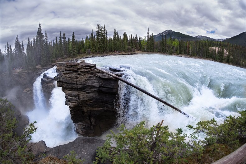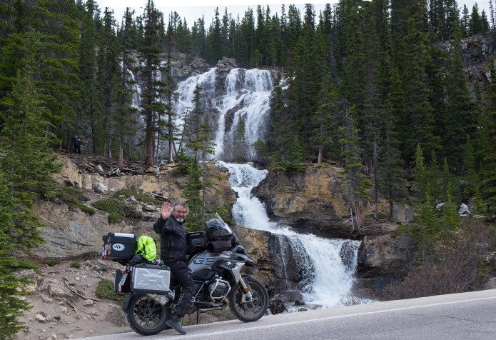 Me paro en las cataratas Athabasca. Bestial la fuerza del agua. Otro salto de agua. Muflones y ardillas por todos lados pero lo que es osos, nada de nada, solo los carteles, por todos los lados, de que son animales extremadamente peligrosos. Tanto que me han metido miedo en el cuerpo y cada vez que me paro solo, para ver algo, miro con recelo a cualquier cosa que mueva el viento.