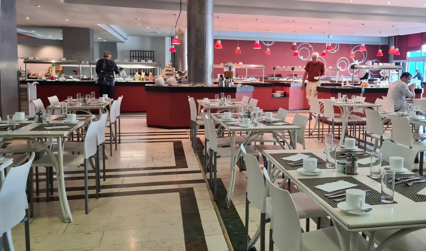 Solo me queda un poco de la sandía de «8,5 libras» que compré anteayer para desayunar, así que me animo a ir al bufet del Hotel La Habana libre, es estatal y dicen que tiene buen precio. LLego al hotel, 1500 pesos (unos 9 euros), tampoco es calderilla por un desayuno, es la mitad del sueldo de todo un mes de un médico.Este país está enfermo además de bloqueado. El interior es como un comedor de colegio, más o menos y el bufet escasito, pero un poco de queso por aquí, tres lonchitas de jamón por allá, dos bollos, uno con crema de «color chocolate» y un zumo de piña de tercera prensada, me van quitando el hambre. Se acerca una señorita uniformada y me ofrece café. ¿Que es un desayuno sin café? algo muy triste, desde luego, así que acepto encantado el ofrecimiento y llena mi taza.
