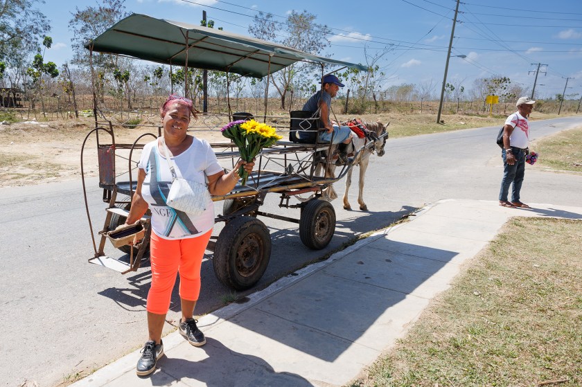 Intentamos coger un triciclo pero es demasiado caro. El conductor me dice que es normal que así sea y, señalándose las piernas, dice, ¡¡energía humana!! y no rebaja ni un peso. Ahí te quedas Indurain. Avanzamos y montamos en un carro tirado por un jamelgo que hubiese hecho llorar de lástima al mismísimo Rocinante. Su conductor , Ramón (vaya nombre más impropio para este menester…) solo grita desaforada y constántemente ¡¡¡a rincón!! ¡¡a rincón!!… y así, poco a poco conseguimos, a base de subir gente, que nuestra tarifa, que se cotizaba en 150 pesos por barba en el momento del embarque, baje a 50 pesos cuando se llena con las seis personas que Rocinante aguanta antes de espicharla de un colapso.
