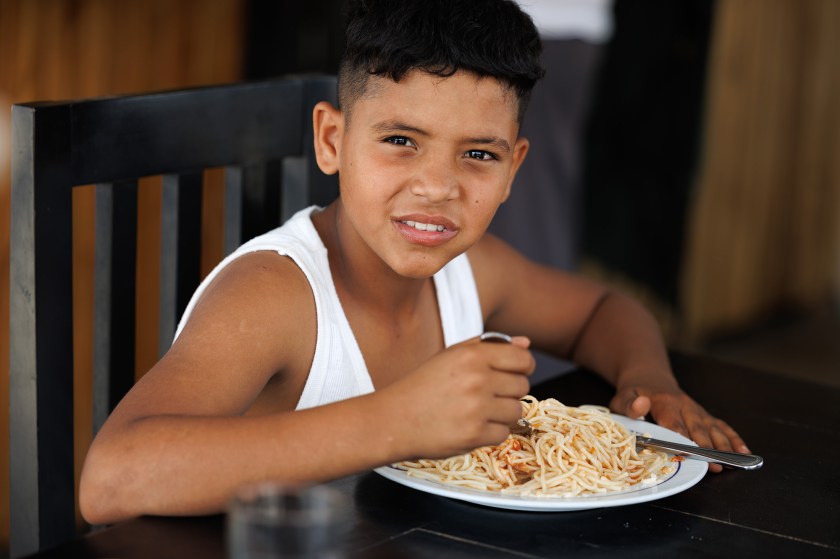 Comemos en un restaurante chamizo próximo. Tiene sus cuatro mesas ocupadas, una chica joven y su hijo de 11 años nos invitan a compartir la suya y posteriormente se nos une un amigo, peluquero, gringo, que ha mandado el capitalismo «al carajo» y vive por aquí, en el nihilismo ( esta palabra encaja bien,no?)