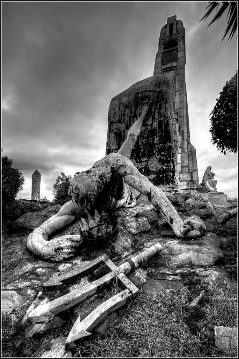 Con un angular de 17 mm y acercándome mucho al tridente, no tuve más remedio que cerrar el diafragma todo lo que pude para mantener el fondo nítido. El monumento representa a Bilbao venciendo a Neptuno y está dedicado a Churruca.