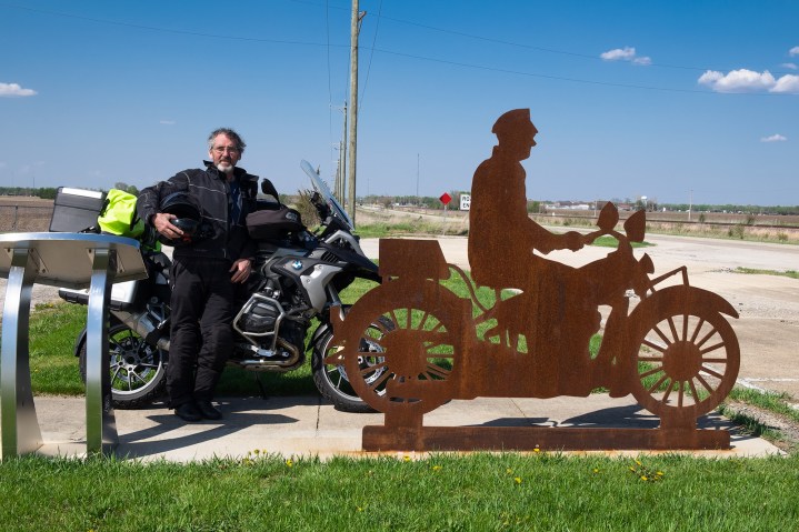 La ruta merece la pena, la mayor parte por carreteras secundarias. Mucho viento racheado. Antes de dejar Indiana, me paro y me hago una foto junto a una iglesia preciosa. Ya estoy en Illinois.
